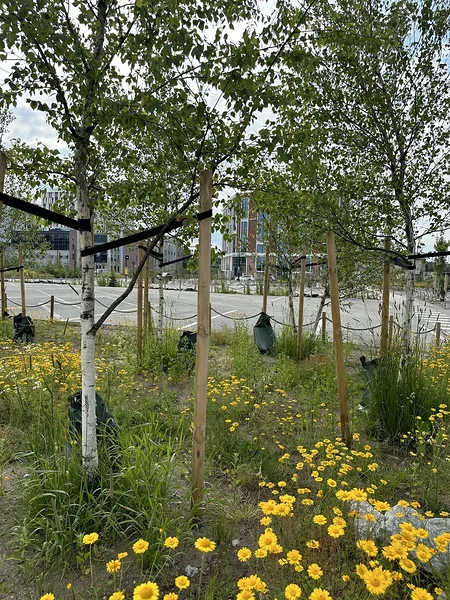 Tegu on ajutise vahekasutusega ja teatud mõttes testlahendusega, millega ka tellija hea meelega kaasa tuli. Juba järgmisel, 2025. aastal hakati väikest osa alast ümber istutama, et järgmisele hoonele ruumi teha.